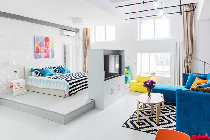 起居与睡眠空间分区,适合情侣及追求宽敞空间的自如客居住。 超大衣柜、多功能电视柜、博物架设计,空间收纳井井有条。 四组超大明窗,带来极佳视野。 通透起居室,朋友小聚,品茶观影,即刻开启情调生活。